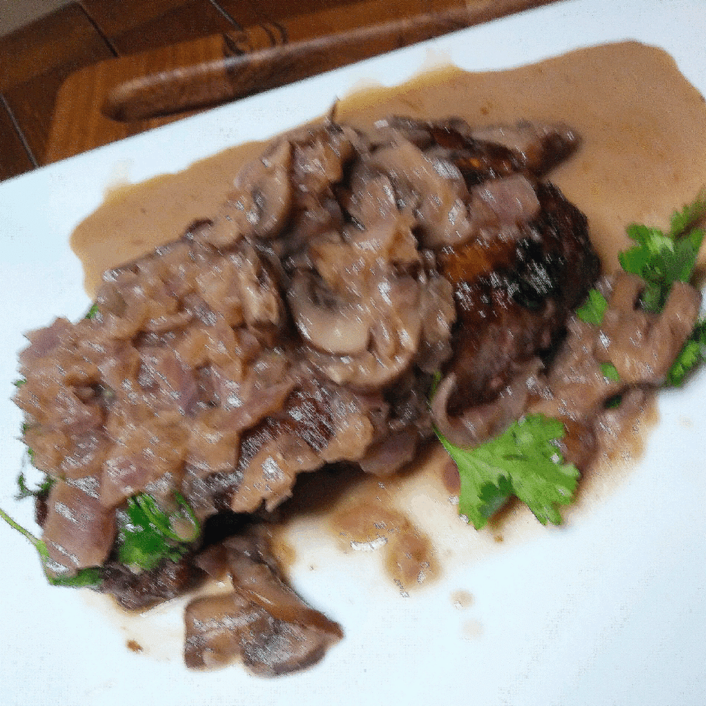 - Portion steak and serve with sauce. You may have extra sauce…which you can top potatoes or bread sticks…or more mushrooms!